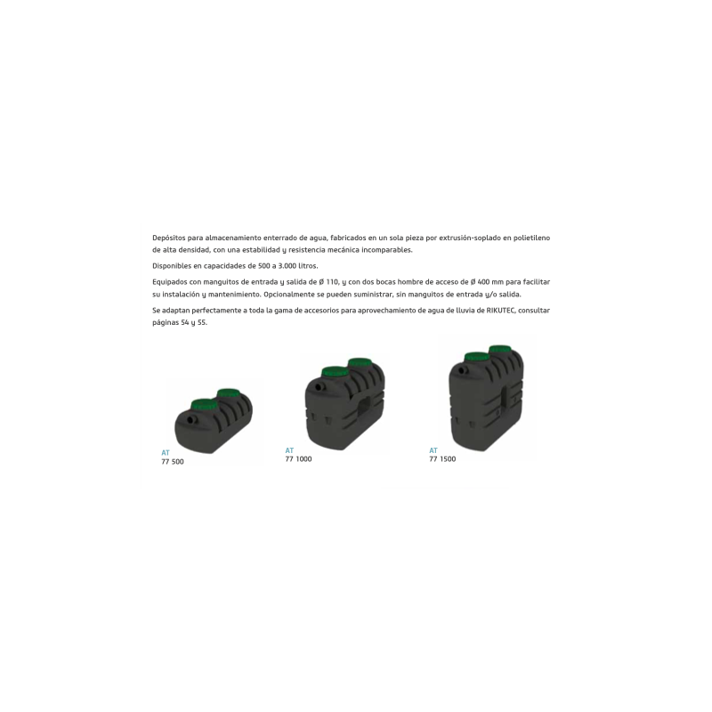 Depósito de Agua para instalación enterrada, en distintos formatos para poder adaptarse a cualquier necesidad, fabricados en PEAD con una estabilidad y resistencia mecánica incomparables.