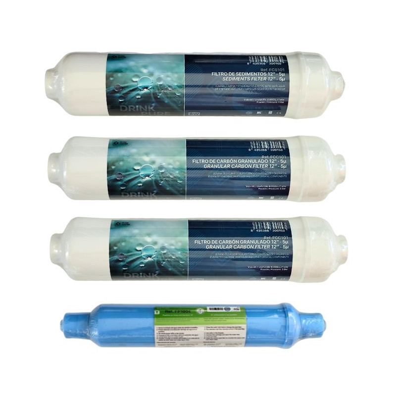 Kit de filtros en línea osmosis compacta conexión rosca.