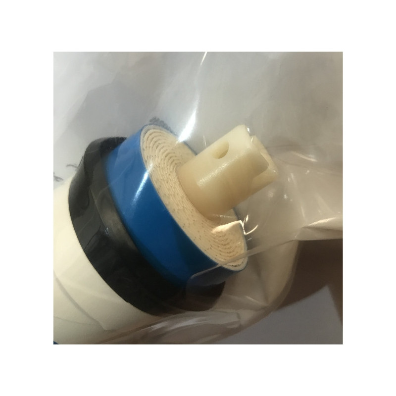 4º Membrana: este elemento es realmente el corazón de la máquina y el filtro encargado de realizar la osmosis inversa. el agua es forzada gracias a la presión a atravesar las láminas semipermeables de poliamida con un micraje de 0,001 micra. esta eliminara ente un 80 y un 99% de elementos que contenga el agua como las sales, nitratos, bicarbonatos, etc...... Dejando así un agua de mineralización débil.