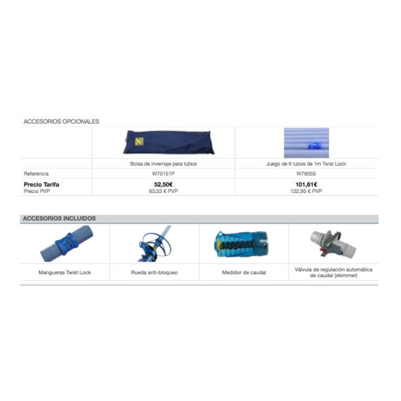 | Peso del limpiafondos (cabezal) | 1,2 Kg (Peso con embalaje 6,8 Kg) |