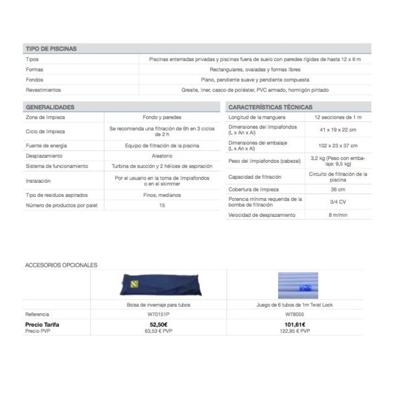 Limpiafondos hidráulico Zodiac MX8TM para piscinas enterradas privadas y piscinas fuera de suelo con paredes rígidas de hasta 12 x 6 m, rectangulares, ovaladas y formas libres, con fondo plano o pendiente suaves y pendientes compuesta, con revestimientos de gresite, linea, casco de poliéster, PVC armado y hormigón pintado