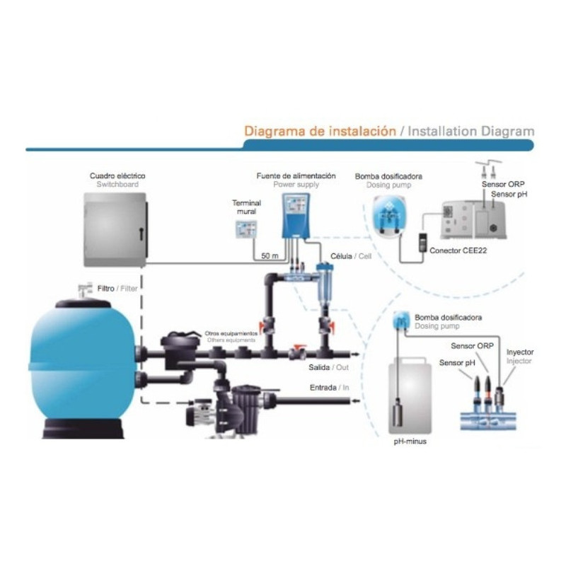 Electrodos de alta duración, en piscinas de hasta 160 m3