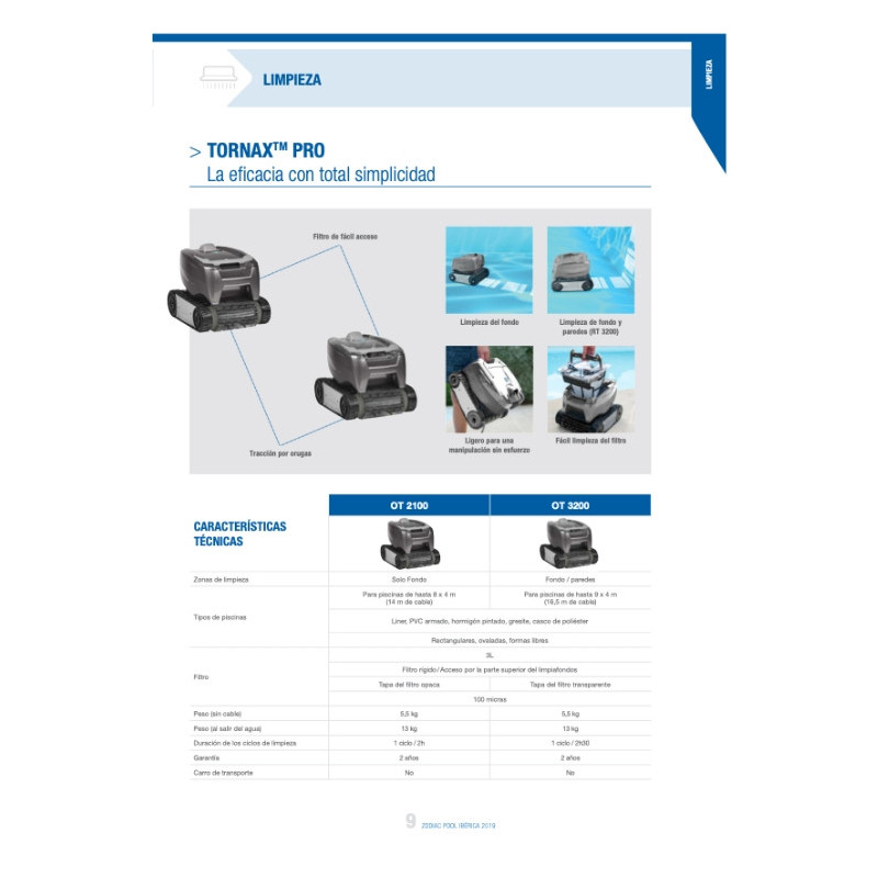 Limpiafondos eléctrico piscina Zodiac OT 3200 TornaX Pro, Piscinas enterradas privadas y piscinas fuera de suelo con paredes rígidas de hasta 9 x 4 m. Sistema Oruga